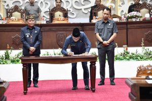 Penandatanganan nota kesepakatan dilakukan secara resmi di hadapan seluruh peserta rapat, menandai tahap penting dalam proses penyusunan RAPBD 2025 yang akan segera dibahas lebih lanjut dalam tahapan selanjutnya.
