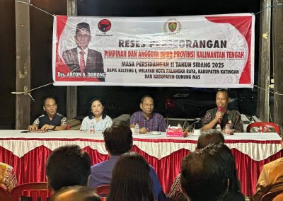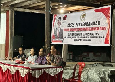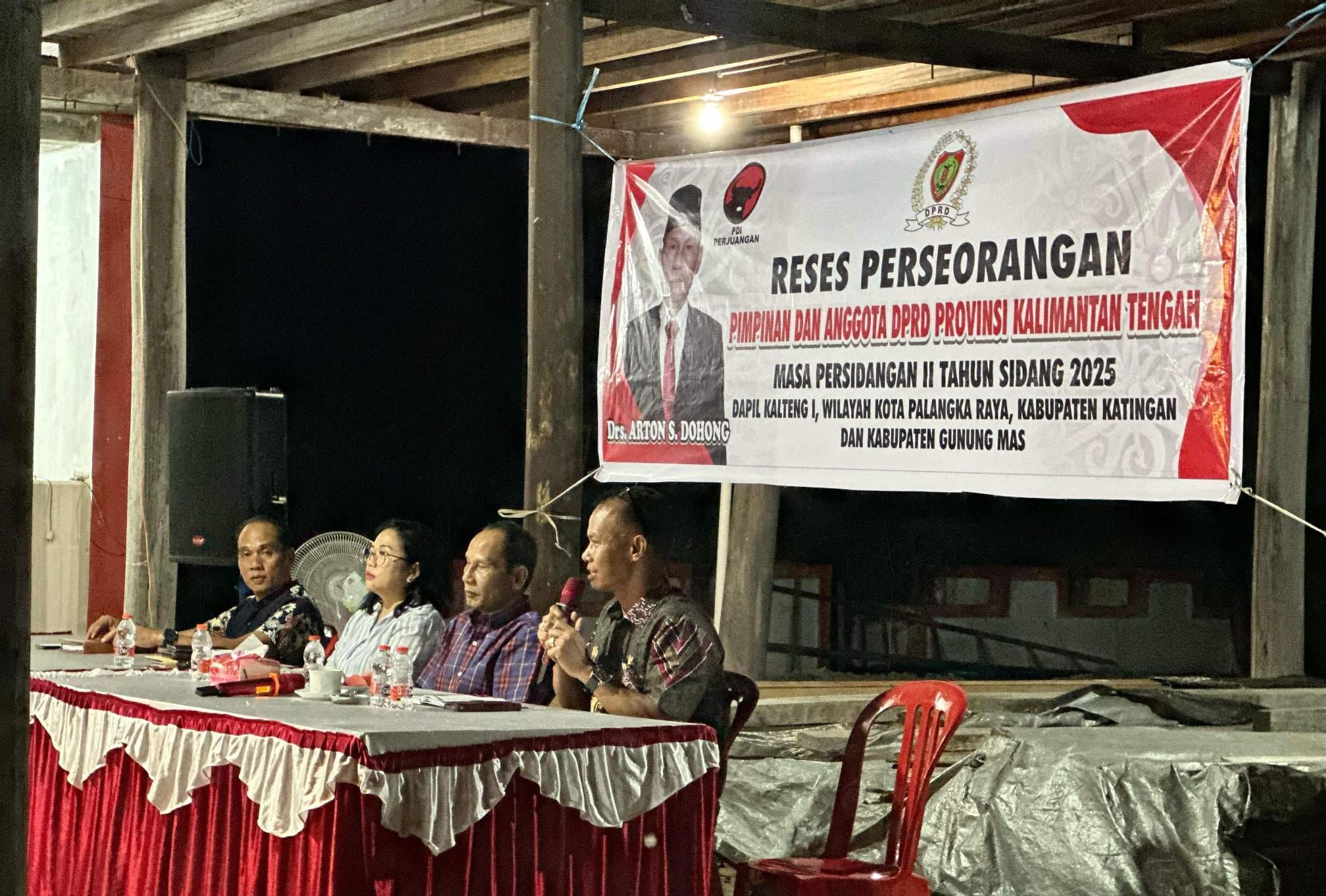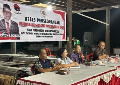 Ketua DPRD Provinsi Kalimantan Tengah (Kalteng), Arton S. Dohong melakukan kegiatan reses perorangan di Daerah Pemilihan I yang meliputi tiga wilayah, yaitu Kabupaten Katingan, Palangka Raya, dan Gunung Masa pada 23 Februari – 2 Maret 2025.